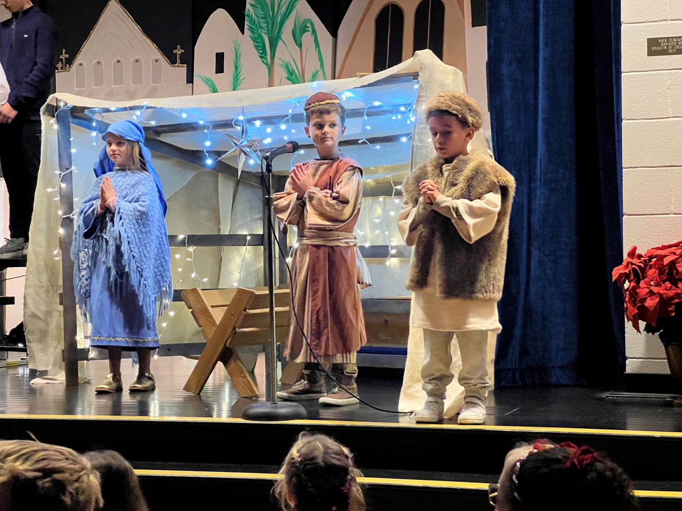 All students participate in the weekly school mass. The fourth grade’s curriculum is based on singing as a choir, and they are given the responsibility to lead the congregation on a weekly basis. Once a month at our Sunday Family mass, all students are again welcome to participate in our choir, and to worship Christ with the community, through a specially designed music program.
